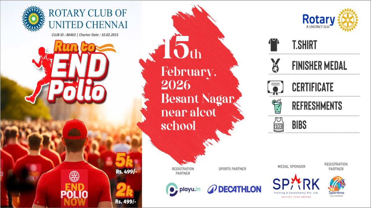 The Rotary Club of United Chennai proudly presents “Run to End Polio”, an awareness run supporting the global mission for a "polio-free world".