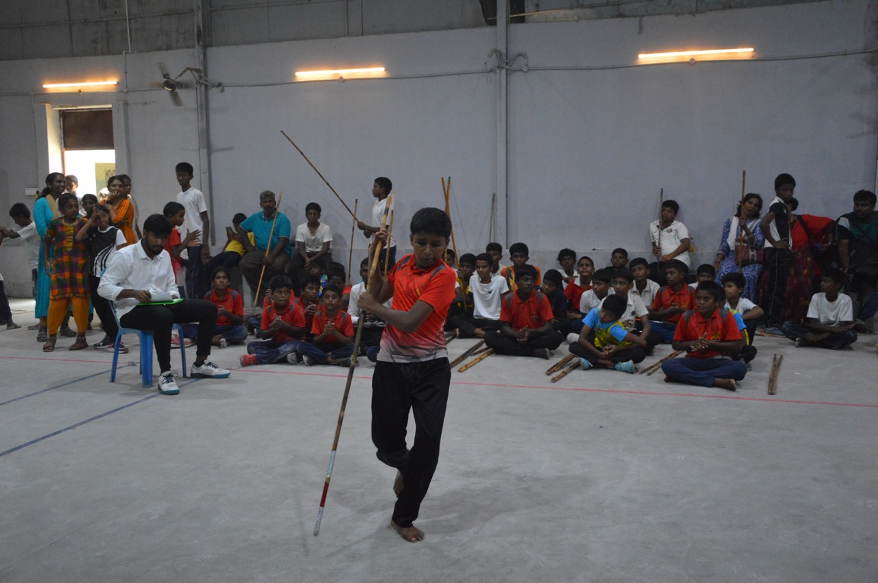District Level Silambam Tournament on June 23rd 2024: The tournament featured Kambu Veechu (Single Stick) and Irattai Kambu Veechu (Double Stick) events, promoting the rich tradition of Silambam.